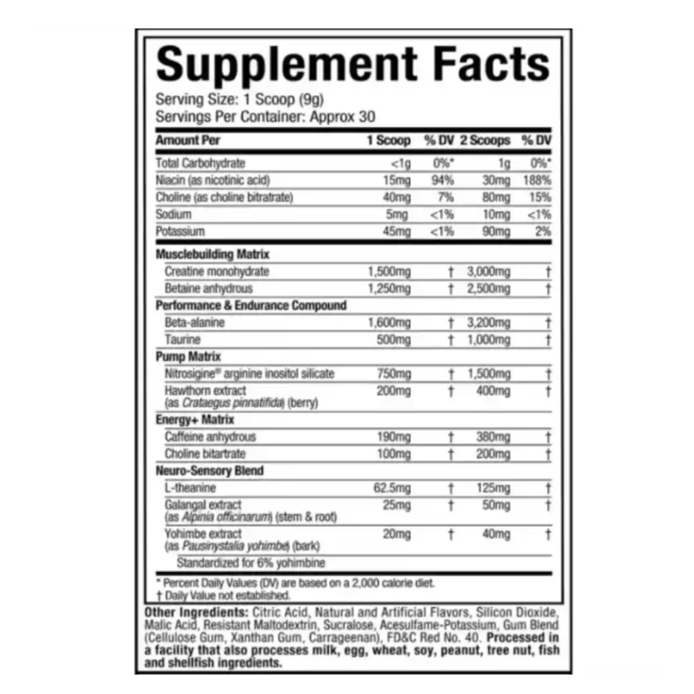 Vapor X5 es un pre-entrenamiento de MuscleTech diseñado para aumentar la energía, el enfoque y el rendimiento durante el ejercicio. Combina ingredientes como creatina, betaína, beta-alanina, Nitrosigine® y cafeína, que ayudan a mejorar la fuerza, retrasar la fatiga, potenciar los “pumps” musculares y dar mayor concentración.